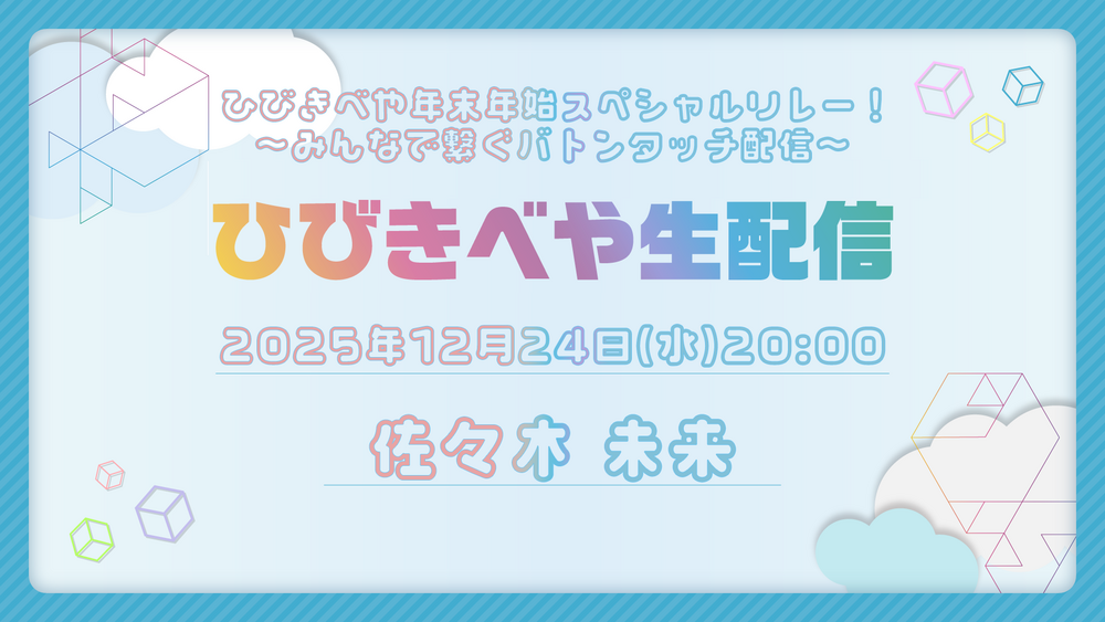 ひびきべや年末年始スペシャルリレー!〜みんなで繋ぐバトンタッチ配信〜 出演:佐々木未来